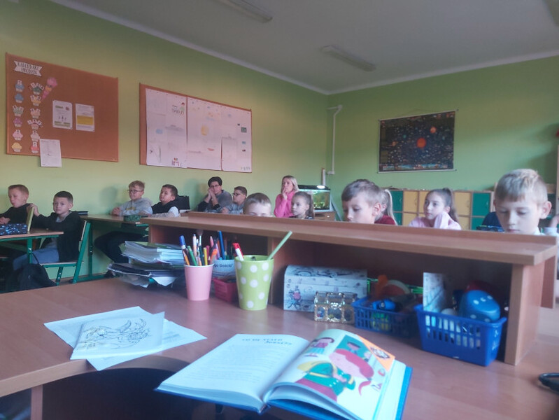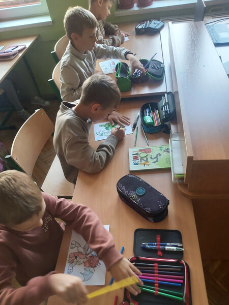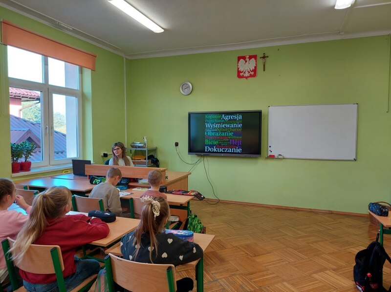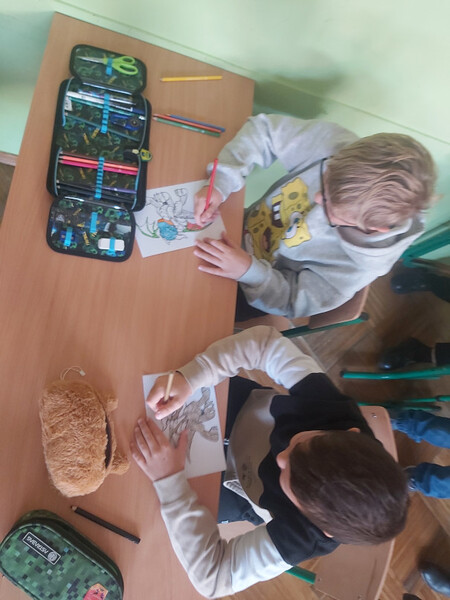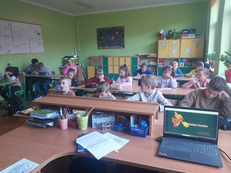 1 października przeprowadziliśmy lekcję biblioteczną dla uczniów klasy III PSP w Wojakowej, na której poruszaliśmy temat agresji i przemocy. Wraz z wychowawcą – panią Anną Wańtyrych, oraz panią Małgorzatą Bodek zwróciliśmy uwagę, że oprócz tej najbardziej powszechnej i rozpoznawalnej przemocy fizycznej jest również przemoc psychiczna, która rani równie boleśnie jak bicie, czy popychanie. Zwróciliśmy też uwagę na gry komputerowe, cieszące się dużym zainteresowaniem wśród dzieci, a zawierające w swym przekazie negatywne i agresywne zachowania, podkreślając, że pod żadnym pozorem nie wolno przenosić ich do naszej codziennej rzeczywistości. W przeprowadzeniu zajęć pomogła nam prezentacja multimedialna oraz dwa opowiadania, które w przystępny sposób pokazały, negatywne skutki jakie niesie ze sobą każda forma agresji. Bohaterem jednego z nich był smok, który nie potrafił zapanować nad swoimi pazurami i krzywdził nimi inne małe, niewinne smoki. Nawiązując do tego, zauważyliśmy, że podobnie i my czasem nie umiemy powstrzymać swoich rąk czy słów, przez co również możemy ranić innych. W ramach ćwiczeń uczniowie zapisywali na karteczkach samoprzylepnych sytuacje, które ich denerwują i sprawiają, że mogliby powiedzieć coś przykrego innej osobie. Kiedy jednak przeczytaliśmy dalszy ciąg historii, gdzie smok przekonał się, że jeśli tylko się chce, można zapanować nad swoją złością, dzieci wykonywały ćwiczenia oddechowe i po kolei odklejały papierowe „pazury”, a następnie kolorowały smoka w taki sposób, by z groźnego i złego zmienił się w przyjaznego. Później przyszedł czas na rozmowy, podczas których wymienialiśmy emocje, jakie odczuwa osoba doświadczająca krzywdy (smutek, strach, złość, poczucie odrzucenia czy osamotnienia) oraz co może kierować człowiekiem wyrządzającym krzywdę innym. Na koniec podkreśliliśmy, że nigdy nie należy milczeć, gdy ktoś nam dokucza. Najważniejsze jest, aby jak najszybciej powiedzieć o tym rodzicom lub innym osobom, do których mamy zaufanie. Spotkanie utwierdziło wszystkich w przekonaniu, że przemoc w żadnej postaci nie jest akceptowalna, a rozmowa i wzajemne wsparcie są kluczem do radzenia sobie w trudnych sytuacjach.