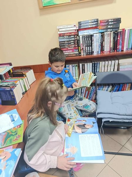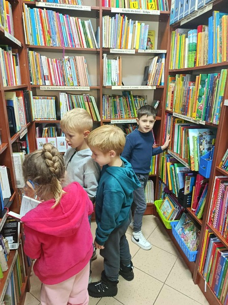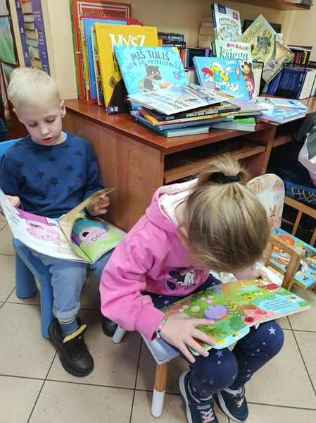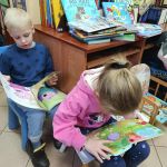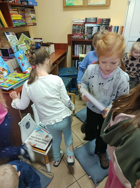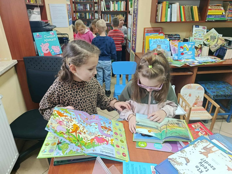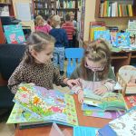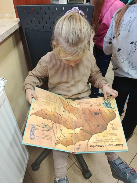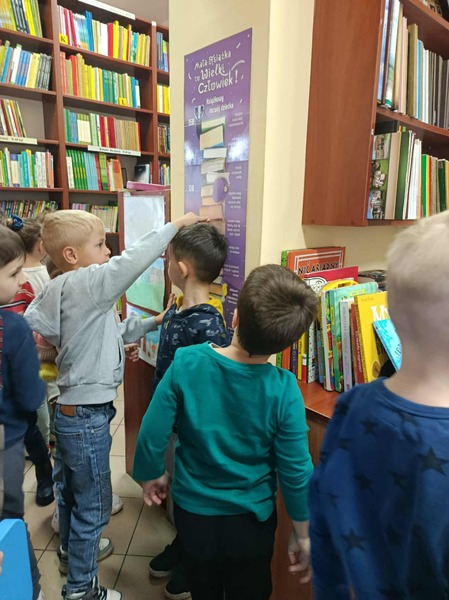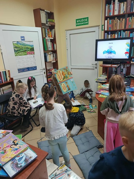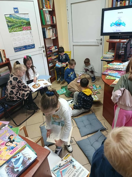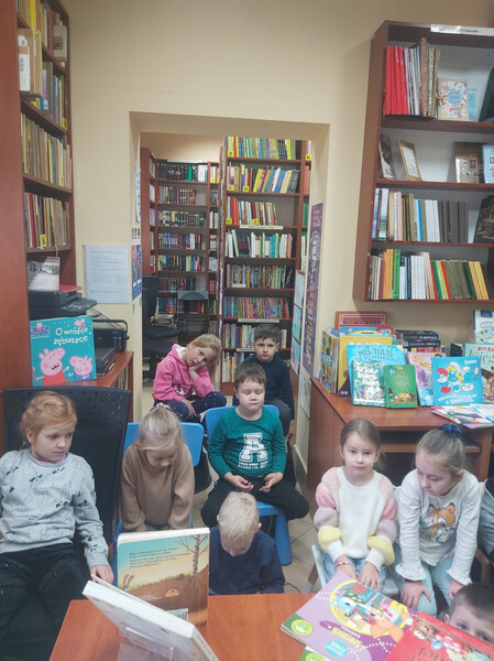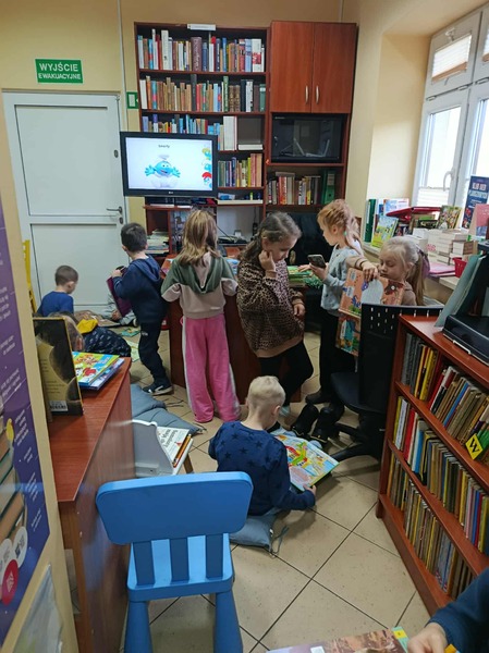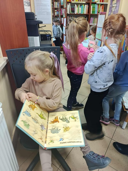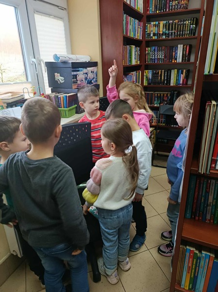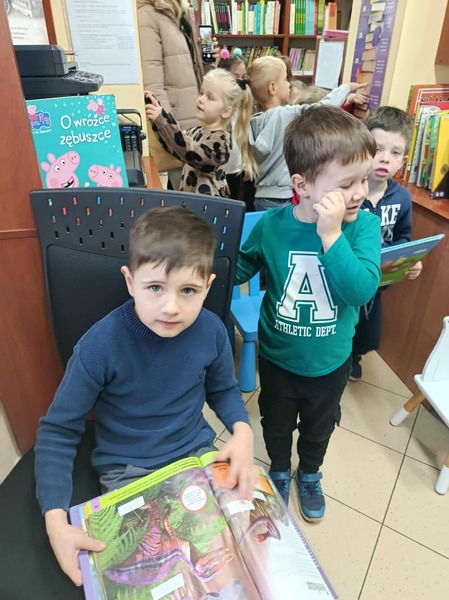 14 listopada w filii bibliotecznej odbyło się wyjątkowe spotkanie, na którym gościliśmy uczniów z oddziału przedszkolnego Szkoły Podstawowej w Wojakowej. Z racji, iż dla niektórych była to pierwsza wizyta w tym miejscu pełnym książek i ciekawych historii, zajęcia rozpoczęliśmy od zaprezentowania krótkiego utworu, opowiadającego o bibliotece i magii czytania. Przedstawiliśmy też krótki regulamin wypożyczalni i zasady obowiązujące przy zapisywaniu się do biblioteki (tutaj podkreśliliśmy, że każde dziecko do lat 15 zapisuje rodzic). Rozmawialiśmy o zaletach płynących z codziennego czytania oraz o tym, jak należy obchodzić się z książkami. Ogromną radość sprawiły wszystkim bajkowe zagadki i samodzielne przeglądanie dziecięcej literatury, gdzie największym zainteresowaniem cieszyły się książki poznawcze o dinozaurach. Na zakończenie zapisane do biblioteki przedszkolaki wypożyczały interesujące ich tytuły, a pozostali obiecali przyjść z rodzicami założyć kartę, by móc cieszyć się ciekawymi historiami w domowym zaciszu. I jak się okazało – popołudniu tego samego dnia kilkoro z nich rzeczywiście dotrzymało słowa i zasiliło grono czytelnicze naszej biblioteki.