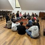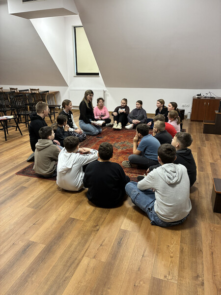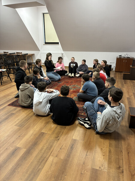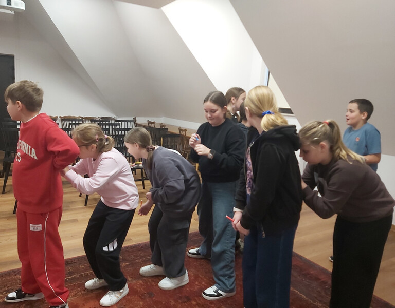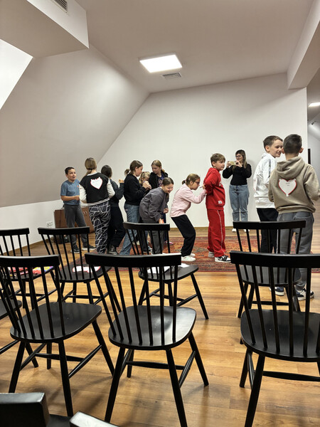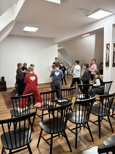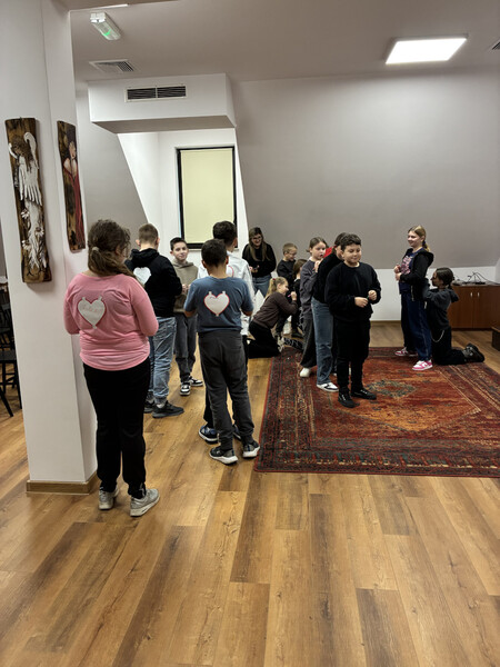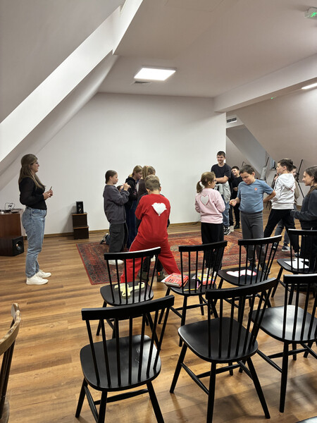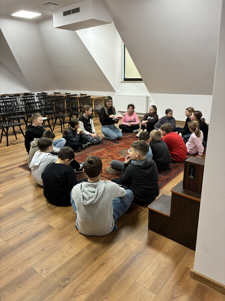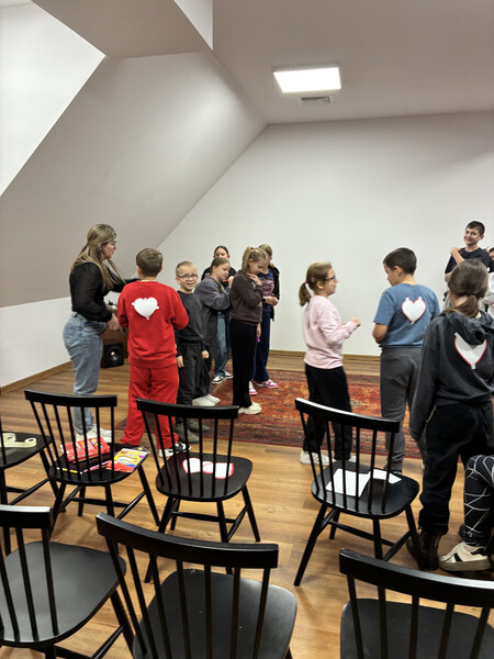 18 listopada gościliśmy w naszych progach uczniów kl. V PSP w Kątach wraz z wychowawcą - panią Beatą Grys oraz panią Moniką Trojanowską, dla których przeprowadziliśmy zajęcia z elementami biblioterapii. W związku z tym, iż za parę dni przypada Światowy Dzień Życzliwości i Pozdrowień, to właśnie ta cecha stała się głównym tematem naszego spotkania. Na początku wszyscy wspólnie zastanawialiśmy się co kryje się za słowem życzliwość i w jaki sposób można ją okazywać. Następnie nasi goście wysłuchali opowiadania, którego bohaterowie żyli w świecie, gdzie słowo „bezinteresowny” było im zupełnie obce, dlatego pomagali i byli uprzejmi tylko wtedy, kiedy im się to opłacało. Podczas rozmów i dyskusji słusznie zauważyliśmy, że „nasz” świat jest o wiele lepszy, niż ten przedstawiony w utworze, a dowodem na to, że potrafimy czynić dobro nie oczekując nic w zamian były pozytywne wyniki testu na życzliwość, który uczniowie indywidualnie rozwiązywali. Ogromną radość sprawiło wszystkim zapisywanie na serduszkach swoich kolegów i koleżanek ich pozytywnych cech i zalet, a jeszcze większą ich odczytywanie. Każdy mógł się przekonać, jak dzięki swojej życzliwości postrzegany jest przez swoich rówieśników. Na zakończenie przeprowadziliśmy tajne głosowanie, podczas którego uczniowie wybierali najżyczliwszą w ich klasie osobę. Spośród uczniów pierwsze miejsca zajęły Julia i Tosia, a wśród nauczycieli, panie: Beata Grys i Monika Trojanowska. Zwycięzcom serdecznie gratulujemy postawy, a wszystkim pozostałym dziękujemy za miłą atmosferę i aktywną pracę podczas zajęć.