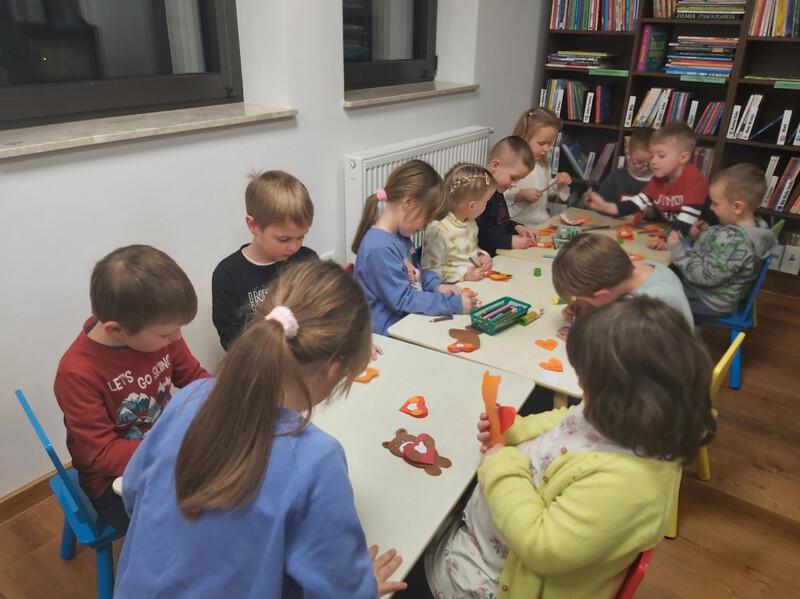 Luty to miesiąc, który szczególnie kojarzy się z walentynkami, dlatego też nasze kolejne Czytanki Czwartkowe poświęciliśmy… miłości. Na początek przeczytaliśmy trzy opowiadania, które przybliżyły dzieciom to wyjątkowe uczucie z różnych perspektyw, począwszy od pierwszego zauroczenia, przez codzienną troskę i bliskość, aż po serdeczność okazywaną w zwykłych, codziennych obowiązkach. Następnie przyszedł czas na wspólną rozmowę i refleksję nad tym, jak można okazywać miłość w domu, w przedszkolu i wśród przyjaciół. Wówczas padło też wiele ciepłych i pełnych wdzięczności słów skierowanych w stronę rodziców, rodzeństwa oraz dziadków, dla których dzieci wykonały papierowego misia z dużym, czerwonym sercem, dziękując im w ten sposób za nieustanne wsparcie, troskę i cierpliwość, czyli codziennie okazywaną miłość.