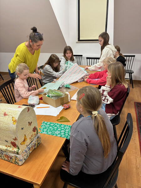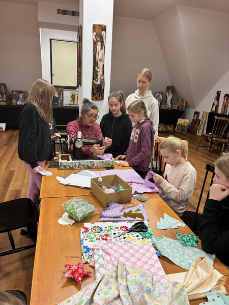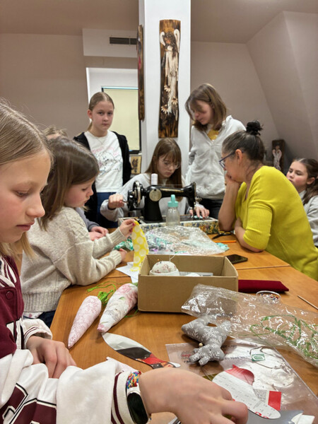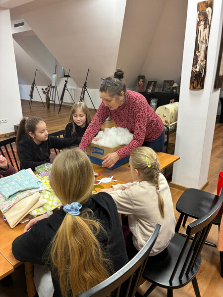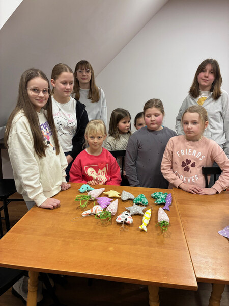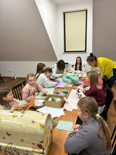 Ogromnym zainteresowaniem cieszyły się warsztaty z Panią Iriną Repetowską, podczas których dzieci miały okazję uszyć własne maskotki. Powstały wyjątkowe, kolorowe i różnorodne pluszaki. Cieszy nas tak duża frekwencja i zaangażowanie.