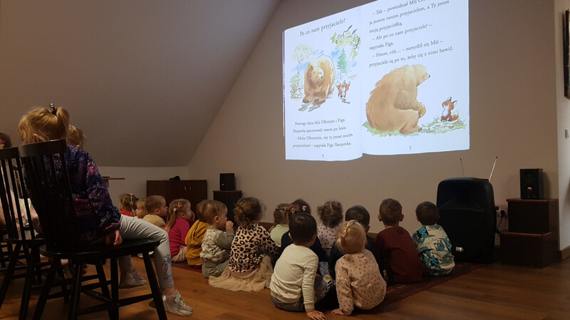Na zakończenie przedszkolaki w skupieniu wysłuchały opowiadania o Misiu Olbrzymie i jego przyjaciółce Fidze, ucząc się, że przyjaciele nie zawsze się ze sobą zgadzają, a kłótnia nie oznacza końca przyjaźni.