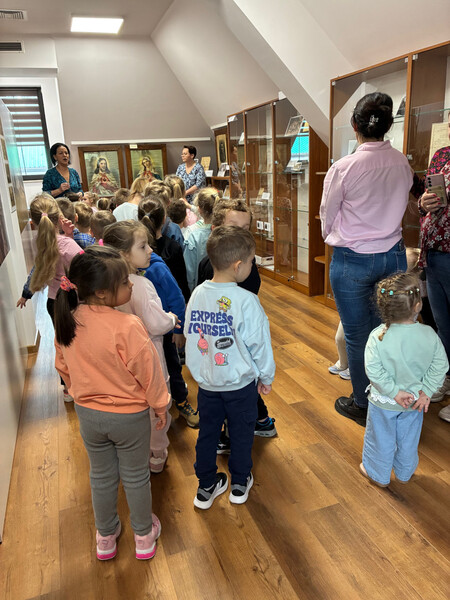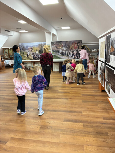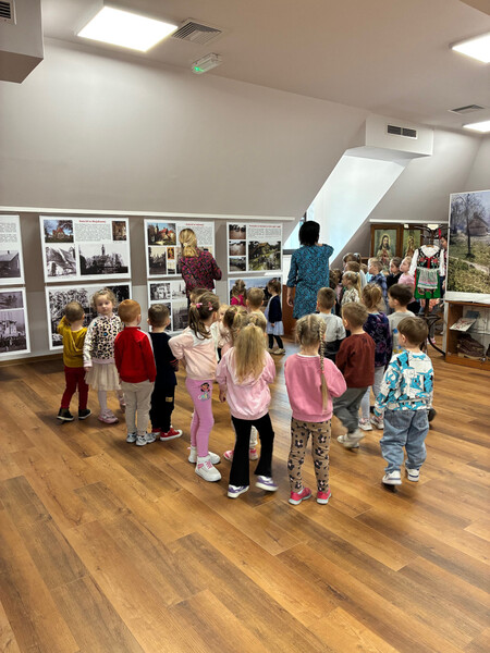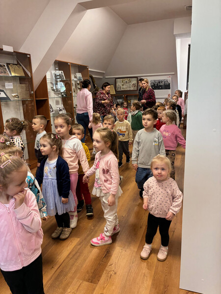 Na drugim piętrze, w bibliotecznej Izbie Pamięci, oprócz wielkoformatowych fotografii dzieci zainteresowały instrumenty oraz czapki należące do iwkowskiej orkiestry, przekazane przez GOK.