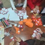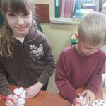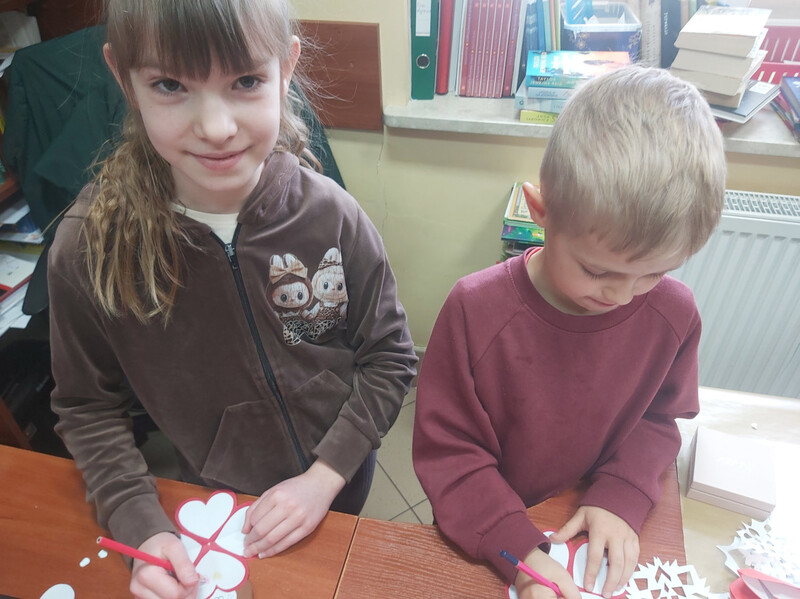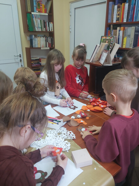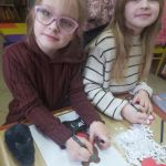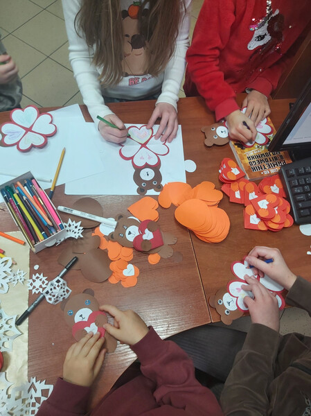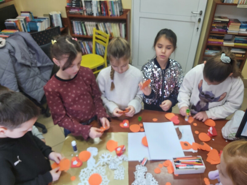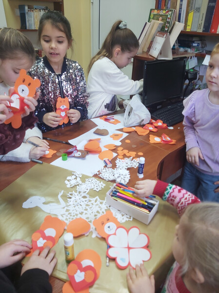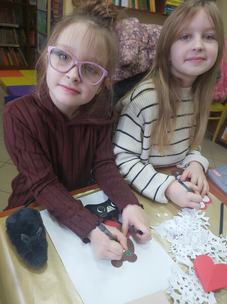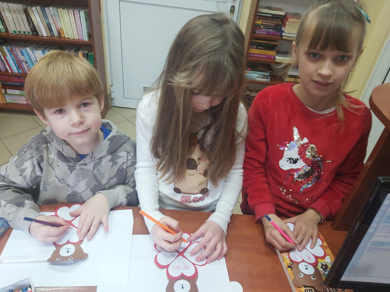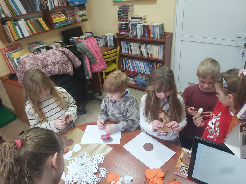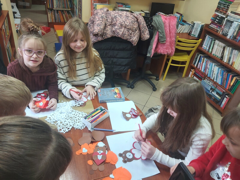 11 lutego w filii odbyło się kolejne spotkanie w ramach Klubu Bibliotecznych Odkrywców. Tym razem wspólnie odkrywaliśmy tajemnice lutego – miesiąca krótkiego, ale niezwykle bogatego w tradycje, przysłowia i święta. Na początku wyjaśniliśmy, skąd pochodzi jego nazwa i co tak właściwie oznacza oraz poznaliśmy przysłowia ludowe związane z tym miesiącem, które od wieków pomagały ludziom przewidywać pogodę i zmiany w przyrodzie. Następnie omawialiśmy obchodzone w lutym święta: Zatrzymując się przy święcie Matki Bożej Gromnicznej wyjaśniliśmy czemu świeca poświęcana w tym dniu nazywa się gromnicą i dlaczego w wielu domach stawia się ją zapaloną w oknach w czasie burzy, czy zbliżających się niebezpieczeństw. Rozmawialiśmy też o Walentynkach i Tłustym Czwartku, poznając dwie bardzo ciekawe legendy o pączkach oraz o Środzie Popielcowej, która rozpoczyna Wielki Post i ma ważne znaczenie w tradycji chrześcijańskiej. W części plastycznej natomiast wykonaliśmy urocze walentynkowe misie, oraz „Panią Zimę” ubraną w sukienkę ze śnieżynek, która pięknie oddała zimowy klimat lutego.
