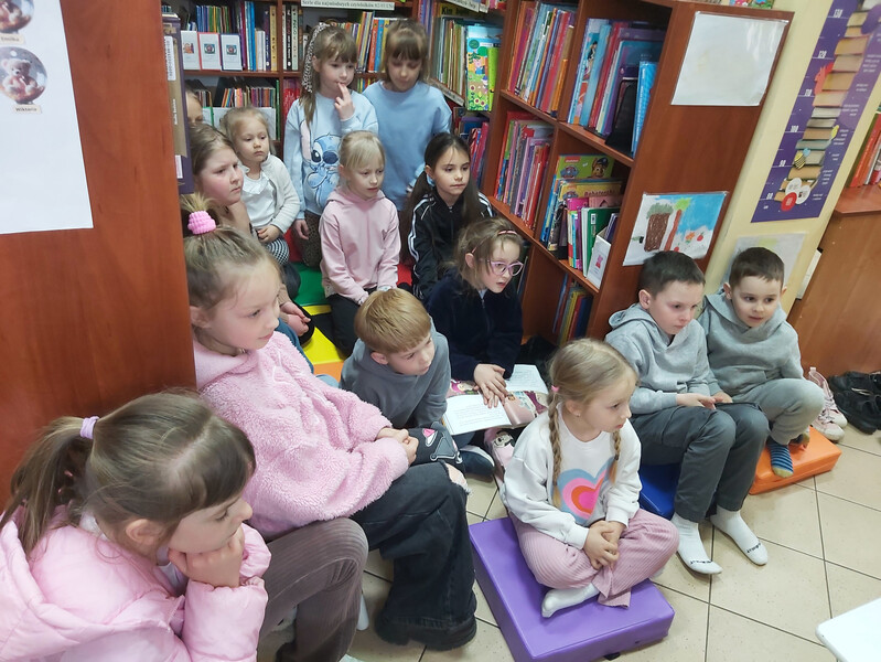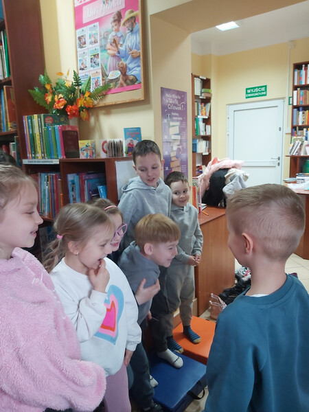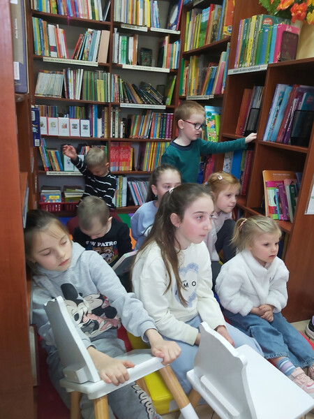 Na kolejnych zajęciach zorganizowanych w ramach Klubu Bibliotecznych Odkrywców rozmawialiśmy o kwietniu – miesiącu, który pachnie kwiatami i zwiastuje nadejście wiosny. Rozpoczęliśmy od genezy jego nazwy. Za pomocą książek poznawczych oraz widoków za oknami wyjaśniliśmy, że kwiecień pochodzi od kwitnących kwiatów, co też uwidacznia się w przyrodzie - wszystko dookoła zaczyna się zielenić, na drzewach pojawiają się pierwsze pąki, a na łąkach, w parkach i ogrodach pierwsze kolorowe kwiaty. Mówiliśmy o zmianach zachodzących w przyrodzie oraz o kwietniowej kapryśnej pogodzie. Rozmawialiśmy o świętach przypadających w kwietniu, oczywiście najwięcej czasu poświęcając Wielkanocy i związanych z nią tradycjach, tj. robienie palm, malowanie pisanek, świecenie pokarmów, wspólne świąteczne śniadanie czy oblewanie wodą w Poniedziałek Wielkanocny. Nie zapomnieliśmy też o jubilatach - Kubusiowi, który trzy dni wcześniej obchodził swoje urodziny zaśpiewaliśmy serdeczne „100 lat”. Na zakończenie spotkania, w związku z obchodzonym również w tym miesiącu Międzynarodowym Dniem Książki i Praw Autorskich, postanowiliśmy napisać swoje dzieła. Jako pierwsza do pracy przystąpiła pierwsza grupa, która nawiązując do wiosny i innych znanych bajek, wymyśliła historię o Króliku i Zajączku, oraz złym Wilku. Grupa druga natomiast o Bocianie Bolku i podniebnej walce pomiędzy ptakami. Na szczęście obydwie historie, pomimo różnych napiętych sytuacji między bohaterami, dobrze się skończyły. Podczas tych kwietniowych zajęć wspólnie napisaliśmy same teksty do książek, ilustracje natomiast powstaną na kolejnych zajęciach, zorganizowanych w maju, podczas obchodów Tygodnia Bibliotek. Wtedy też przytniemy nasze dzieła do odpowiednich formatów i będzie je można podziwiać w zbiorach regionalnych naszej filii.