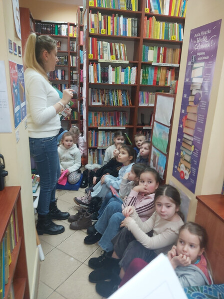 20 lutego odbyło się kolejne spotkanie w ramach cyklu Czytanki Polecanki dla Pierwszaków. Podobnie jak na poprzednich spotkaniach, tak też i tym razem staraliśmy się polecać naszym małym gościom takie książki, które zabiorą ich w niezwykłą, pełną emocji i niezapomnianych wrażeń przygodę, a jednocześnie takie, by ich treści była doskonale dostosowana do możliwości i umiejętności czytelniczych każdego z nich. Dodatkowo z racji przypadającego 21 lutego Dnia Języka Ojczystego, rozmawialiśmy o wyliczankach, które każde dziecko otrzymało w szkole do nauki na pamięć i które pięknie wyrecytuje na forum całej klasy. Przy okazji zaprezentowaliśmy też dostępne w bibliotece książki zawierające polskie rymowanki, śpiewanki i wyliczanki – zarówno te dobrze znane dzieciom z wczesnego dzieciństwa, jak i takie, których mogą jeszcze nie znać. Spotkanie to było zarówno okazją do promowania czytelnictwa jak i wspólnego świętowania piękna języka polskiego.