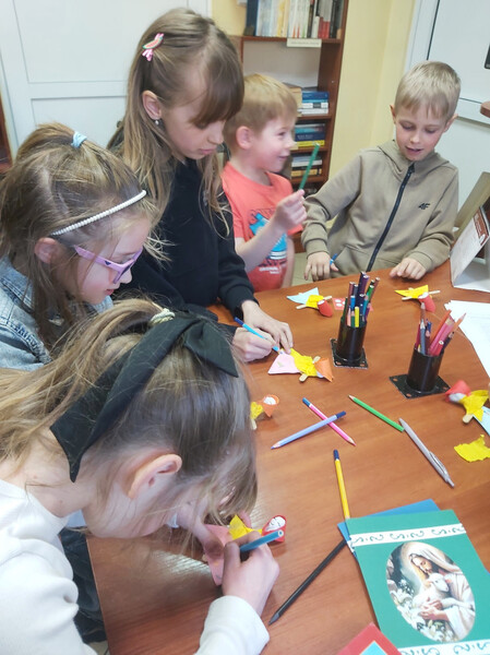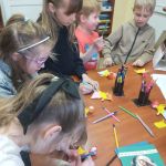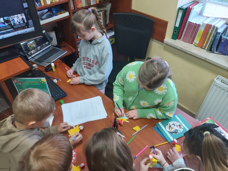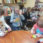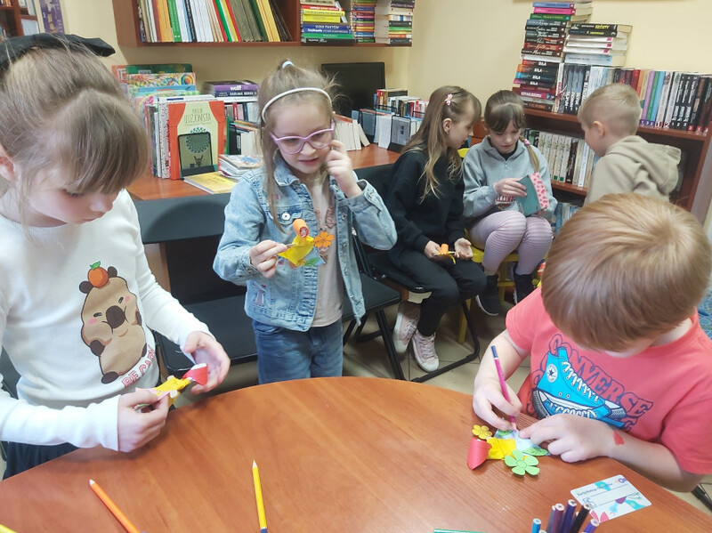Kolejne spotkanie Klubu Bibliotecznych Odkrywców odbyło się 18 marca i upłynęło w prawdziwie wiosennej atmosferze. Tym razem tematem przewodnim był marzec – miesiąc pełen zmian, tradycji i pierwszych oznak budzącej się do życia przyrody. Na początku nasi mali goście poznali genezę nazwy miesiąca oraz dowiedzieli się, jakie święta obchodzimy w marcu. Oprócz tych oczywistych, zapisanych w tradycyjnym kalendarzu zwróciliśmy uwagę na indywidualne „święta” naszych małych uczestników. Spoglądając do „klubowego kalendarza” wywołaliśmy na środek dzieci, które w tym miesiącu obchodzą swoje urodziny i odśpiewaliśmy im radosne „100 lat”. Następnie na podstawie książek poznawczych rozmawialiśmy o pierwszych zwiastunach wiosny, pojawiających się pierwszych kwiatach, pierwszych owadach na łące oraz o tym, jak zmienia się otaczający nas świat po zimie. Poruszyliśmy temat nowalijek, oraz tradycji związanych z nadejściem wiosny. W tym miejscu mówiliśmy o wiosennych porządkach i o topieniu Marzanny – symbolu odchodzącej zimy. Na koniec spotkania każde z dzieci wykonało własną małą Marzannę z biodegradowalnych materiałów, by zabrać ją do domu i zgodnie z tradycją, 21 marca wraz z rodzicami udać się nad rzekę i wrzucić kukiełkę do wody, wierząc, że wraz z nią odpłynie zimowa szarość, a jej miejsce zajmie ciepła, kolorowa i pełna radości wiosna. Podczas spotkania wykonaliśmy również kartki świąteczne, dla starszych i wiernych bibliotece Czytelników. Spotkanie upłynęło w miłej, pełnej zaangażowania atmosferze i już teraz nie możemy się doczekać następnych wspólnych odkryć związanych z kolejnym miesiącem roku.